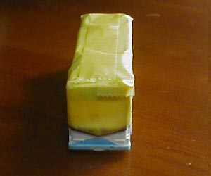 次に、前面と側板,後面と側板でそれぞれ接着剤でL字形に組みます。 このとき、屋根板と合わせてみて(屋根に接着剤はつけないこと)きれいに合うかを確かめながら位置合わせをします。 位置がOKであれば、そのまま乾かします。 |