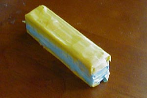 マスキングゾルは青い乳白色ですが、乾燥すると写真のように透明の青になります。 |