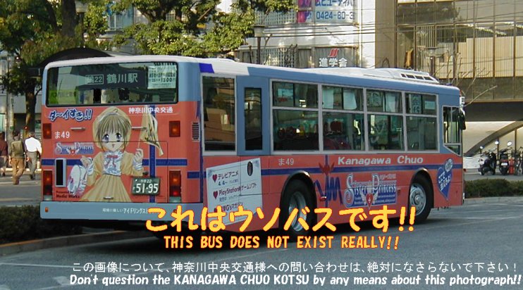 ダ〜イすき!! 良くも悪くも話題になったラッピングバス・・・ 神奈中が採用したらこうなっただろう・・・(笑) 改造元の写真 (撮影場所:調布駅南口) サブタイトルは【究極のバス停“上矢部”へようこそ! 】 |
