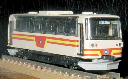 1.有田鉄道レールバス(ハイモ180) 2.富士重工レールバス(トミックス製) 3.金屋口 4.キット素組み (塗装は、スプレーで下地を塗装後デカール) ※行き先表示を窓の裏側に貼りつけるのがミソ |