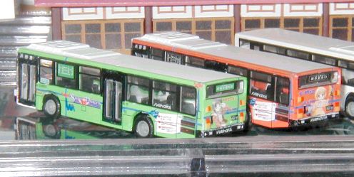 1.メモオフ2ラッピングバス(東京都営バス) 2.富士重工路線バス(TOMIX社) 3.虹01 国際展示場 4.塗装変更のみ(タトゥシール印刷) 製作:興津由衣様 |