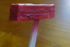 正面は段差が多いためフリーハンドでやるしかないようです この写真は塗り分けの角度を間違えています(右側の角度が急になっている) こういった失敗はマスキングゾルの上塗りで解決できます。 |