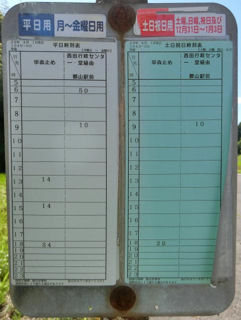 甲森の時刻表。到着時刻を載せるのって珍しいよね。
