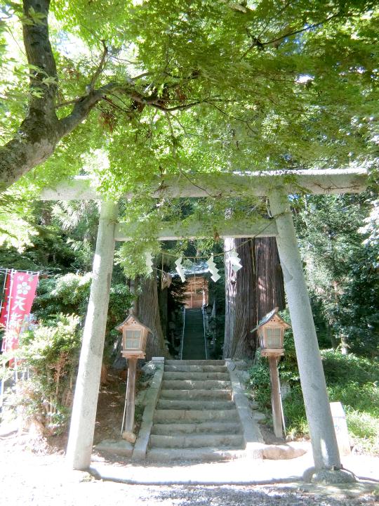 天然記念物のペグマタイト岩脈の露頭をご神体とする鹿島大神宮が近くにあります。