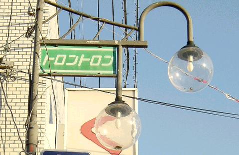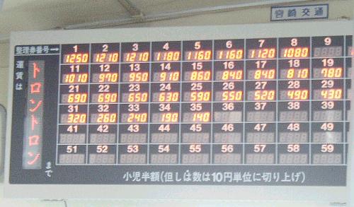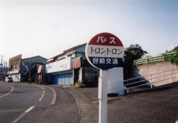 | 岡山県倉敷のドンドンと同じく、水の流れる音が由来です。 日向〜美々津駅〜トロントロン〜高鍋の路線と、 通り浜〜川南駅〜トロントロン〜川南の路線では 別々のバス停が用意されています。 通り浜線は商店街のバス停(左の写真)を通過し、 トロントロン交差点を駅方面に行った所のバス停(下の写真)に停まります。 |