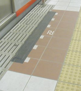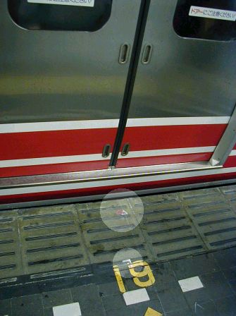 No.2 第1段階 今のところ、電車の扉の位置に印がつけてあります。 これをもとに柵の位置を決めるものと思われます。 2ヵ月近く経っていますが、今のところ進展はありません。 撮影:2001/2/26(土) |