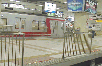 No.10 第8段階 電車接近時に点灯し、客に注意を促すスレッドラインは 現在も工事中のようで、覆いがかけられています。 ・・・もう完成したのかな・・・?(6/1現在) 撮影:2001/5/29(火) |