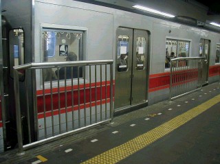 No.8 第7段階 全ての柵の取り付けが完了した横浜駅。柵の次の改良は・・・ ・ホーム床の張り替え ・車椅子用スロープの設置(各一ヵ所づつ) ・列車接近時用のスレッドライン設置 ですが、床の張替えと平行してスレッドラインの設置にも入っています。 運行時間中は写真のように覆いがされ、深夜のうちに設置している模様です。 これらは6月までに完成する予定なので、なるべくこまめに撮影しておかなければ(笑) 撮影:2001/5/17(木) |